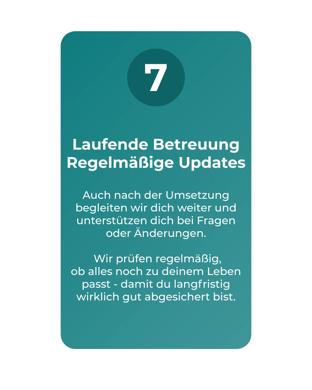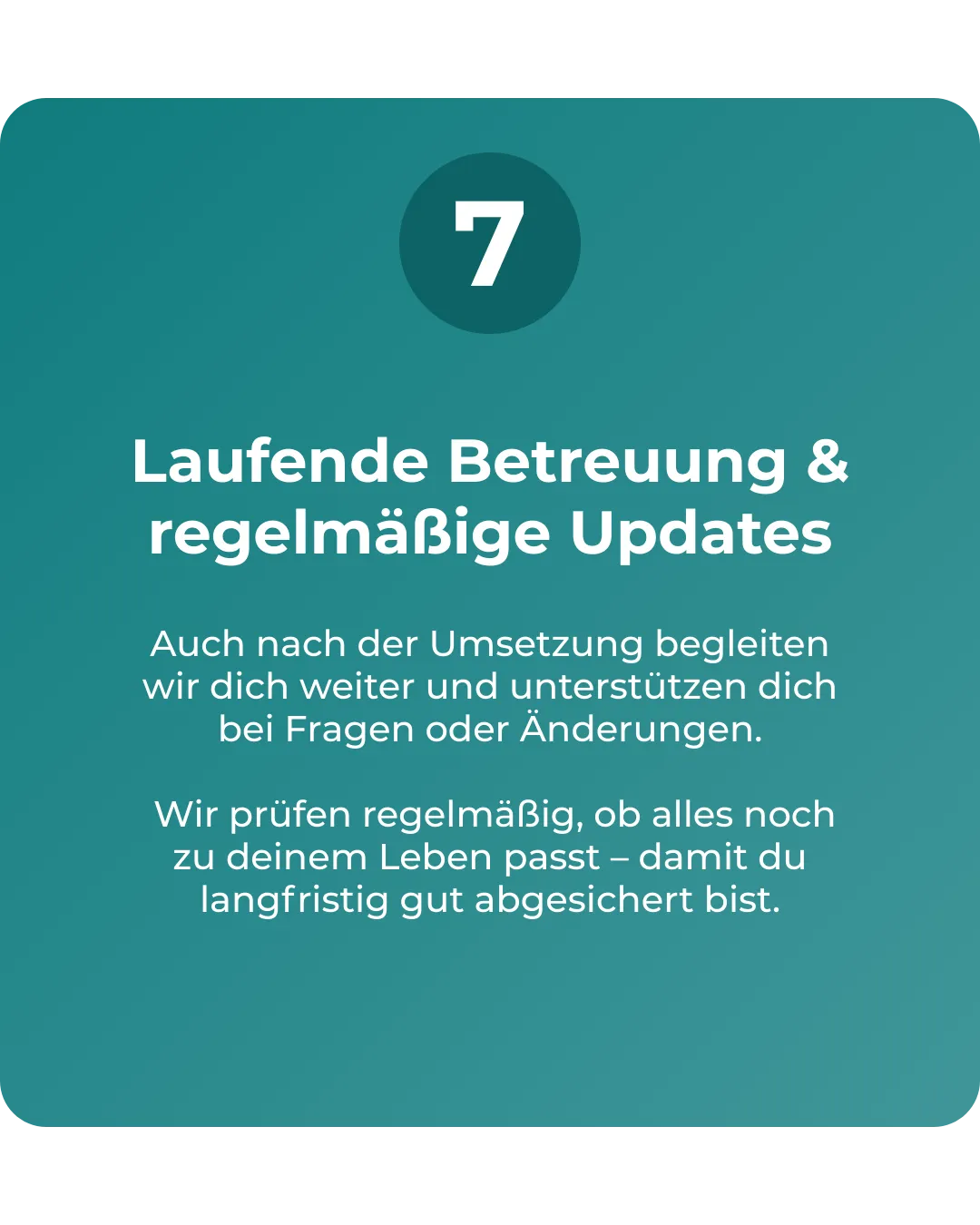 Wir stehen dir sehr gerne dauerhaft als Ansprechpartner zur Seite: für Fragen, Änderungen, Schadensfälle oder wenn sich deine Lebenssituation verändert.