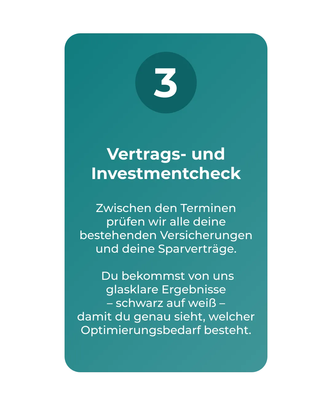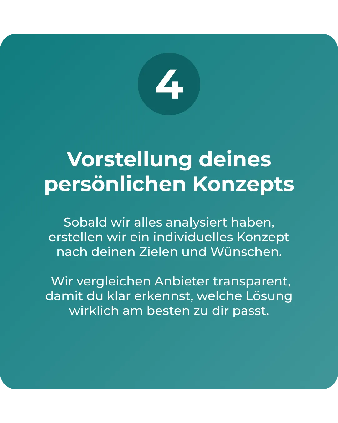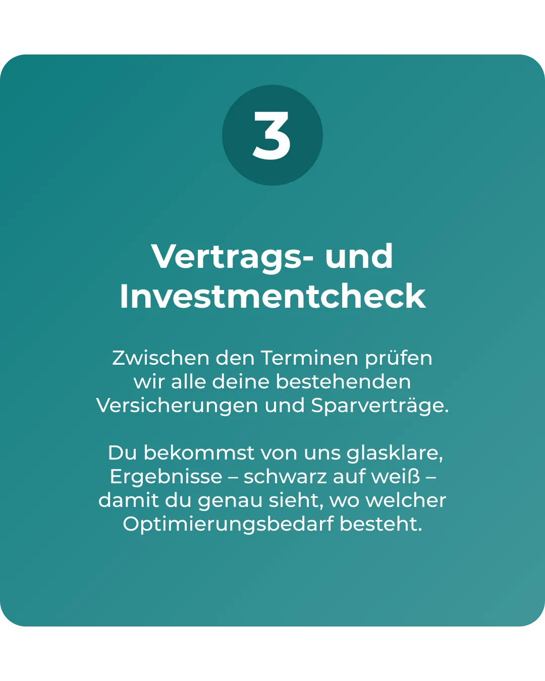 Am Ende bekommst du eine übersichtliche Empfehlung, die deine Absicherung, dein Investment und deine Altersvorsorge optimal aufeinander abstimmt.