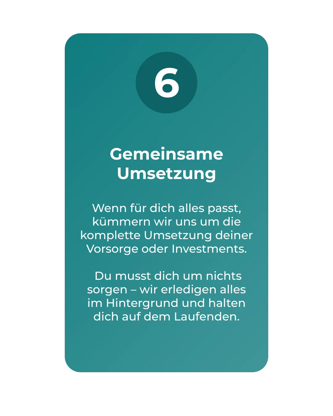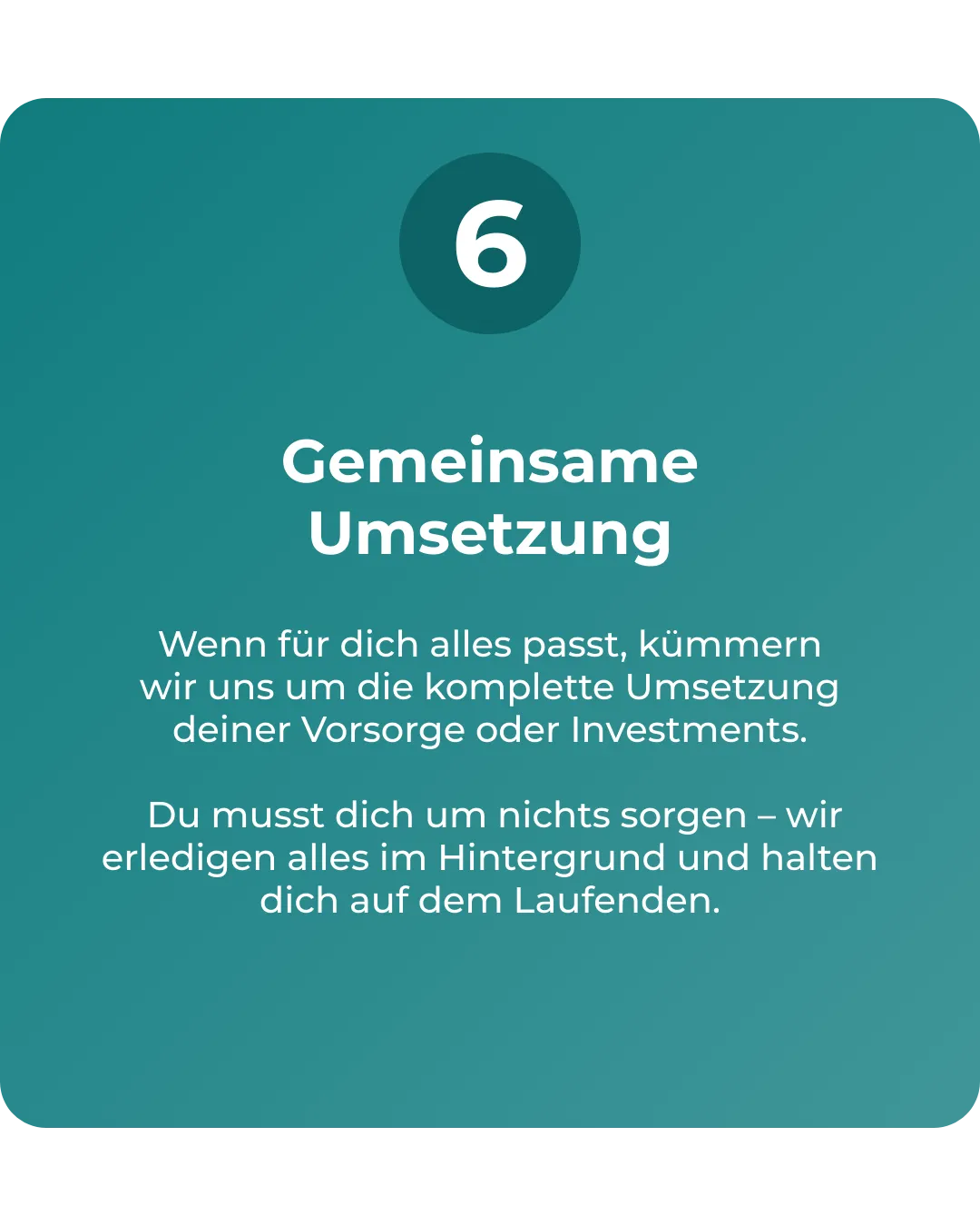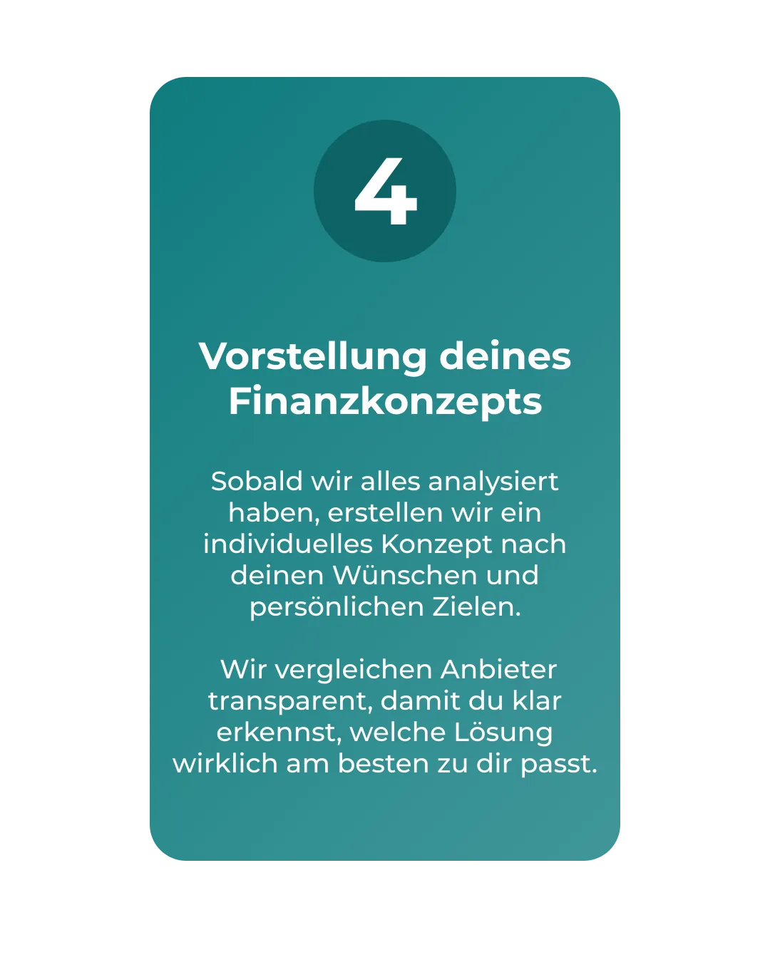Am Ende bekommst du eine übersichtliche Empfehlung, die deine Absicherung, dein Investment und deine Altersvorsorge optimal aufeinander abstimmt.