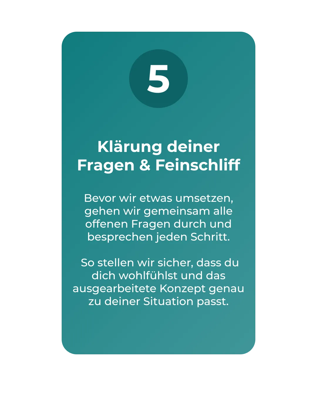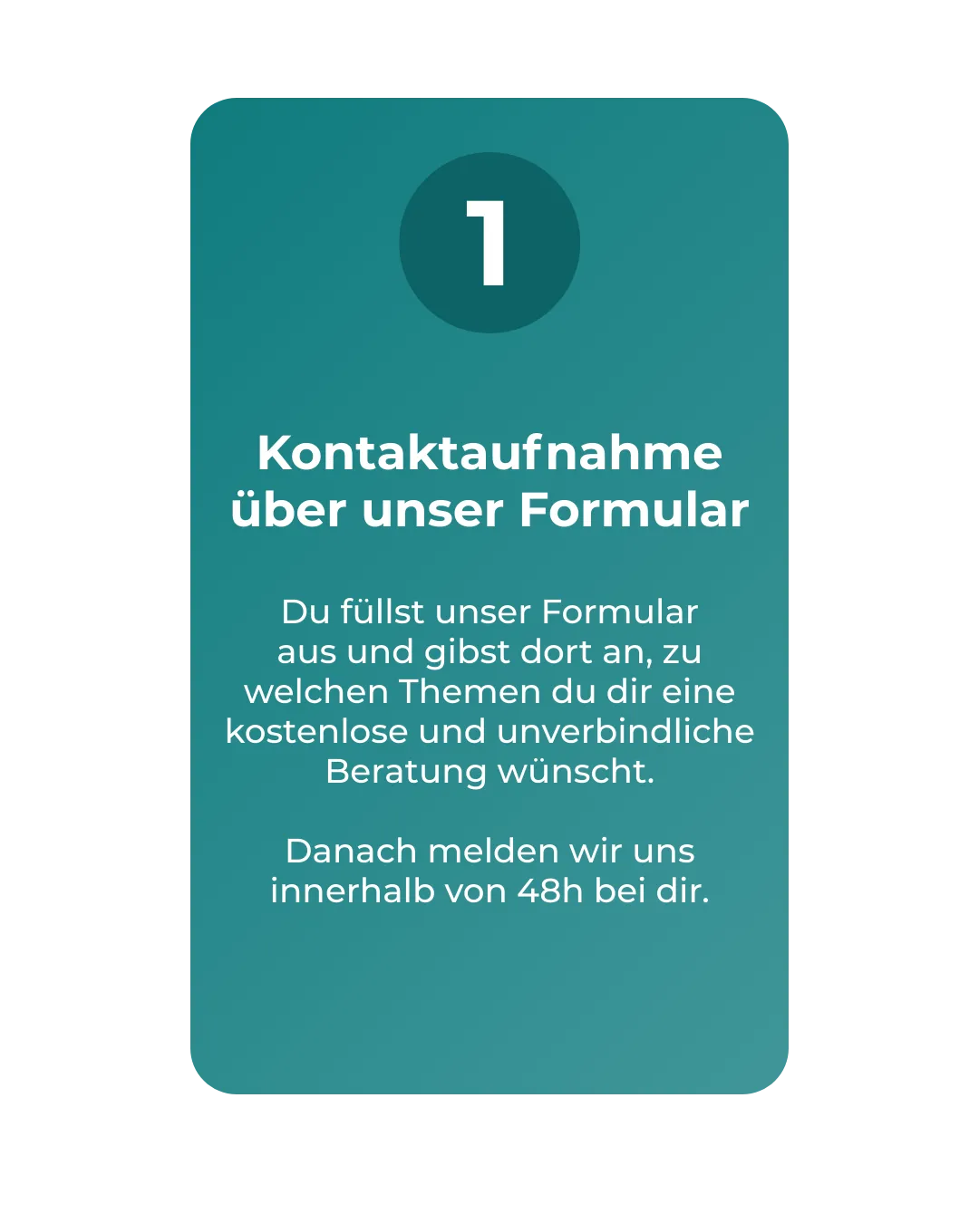 Wenn du dir eine Beratung wünschst, folgen weitere Gespräche per Online Call, in denen wir Schritt für Schritt alle für dich wichtigen Themen durchgehen.